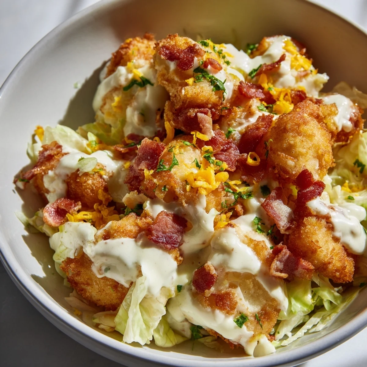 These satisfying bowls bring together tender chicken pieces and crispy bacon with thinly sliced green cabbage, all coated in a velvety homemade ranch sauce. The heavy cream, sour cream, and cream cheese blend creates luxurious richness while the ranch seasoning adds that familiar tangy herb flavor. Ready in just 40 minutes with simple one-skillet preparation, this dish naturally fits low-carb and gluten-free lifestyles without sacrificing comfort. Each serving delivers 32 grams of protein for lasting satiety.