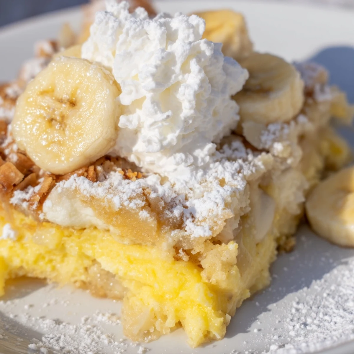 What makes this particularly brilliant is how the layers meld during baking—the cheesecake becomes richer, the bananas soften into sweetness, and the cake topping creates a delightful texture contrast. Serve it warm with freshly whipped cream for the ultimate comfort dessert experience.